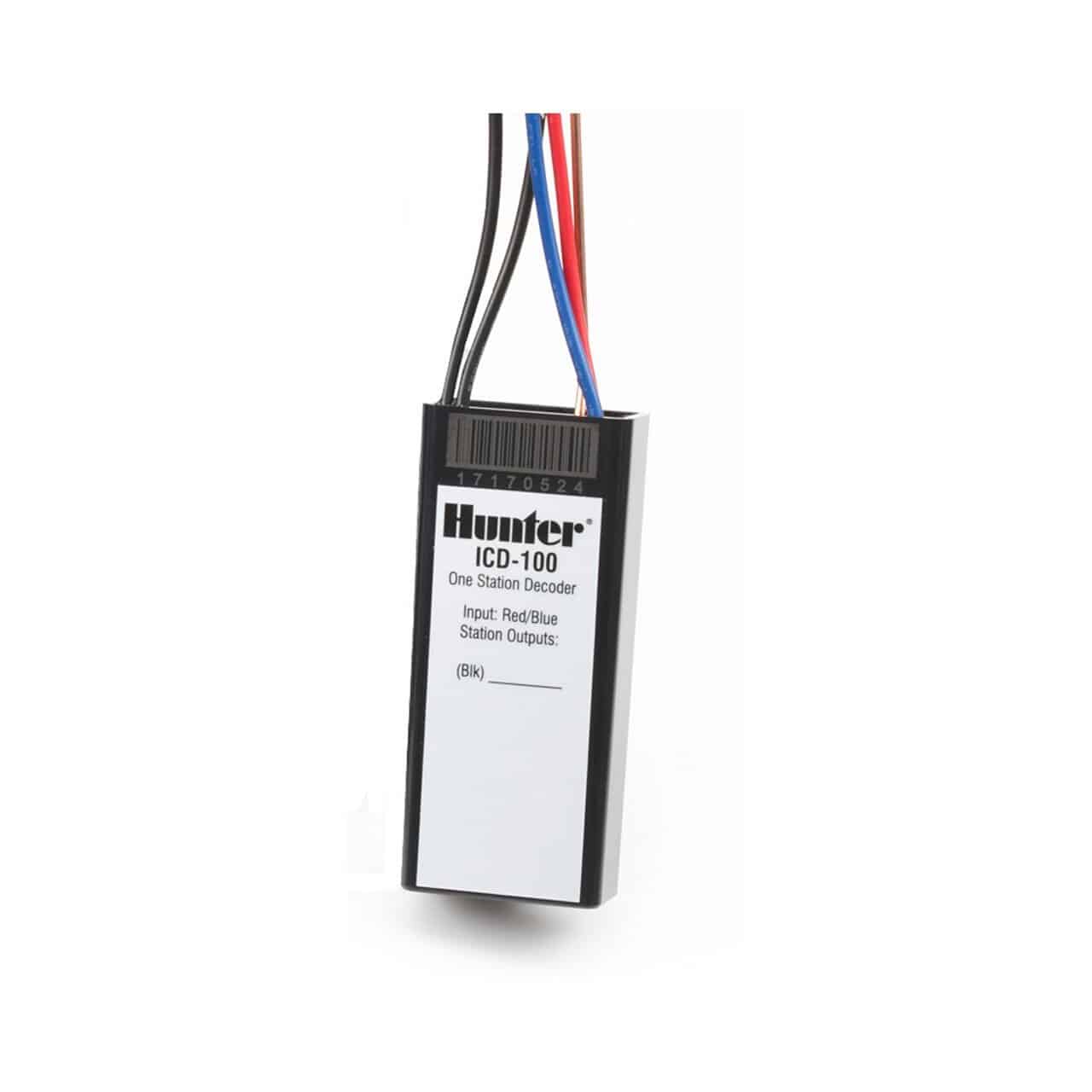 The versatility of the ACC controller grows even more powerful with the addition of the two-wire decoder system from Hunter. ACC-99D uses two-wire decoders to control up to 99 stations without giving up the arsenal of features provided by the ACC. Operating large numbers of valves over long distances, the ACC99D decoder controller takes full advantage of the powerful ACC feature set. Since it’s two-wire powered, it also saves copper wire, simplifies troubleshooting, permits rapid addition of new stations, minimizes trenching, and permits remote sensor monitoring over the two-wire path.